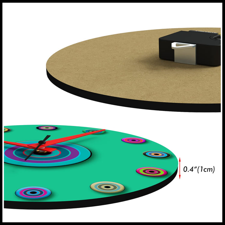 The ASTRA Wall Clock Material is made of environment friendly wood (not solid wood). It is covered with beautiful images. It is printed with special glossy embossed effect. It does not have a glass cover and no frame. It is practical and a beautiful combination! </li> <li>Silent: